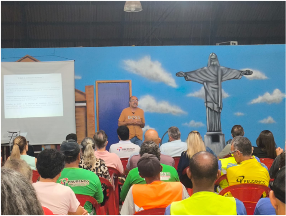 No dia 05 (quarta feira), o técnico em Segurança do Trabalho do CEREST de Presidente Prudente, Antonio Marcos Sanches, ministrou palestra na Secretaria de Mobilidade Urbana ? SEMOB, aos servidores da SEMOB, SEAGRI e SEDEPP, tendo como tema os trabalhos e ações desenvolvidas pelo CEREST e a importância da prevenção aos acidentes de trabalho como fator primordial para a Saúde do Trabalhador e da Trabalhadora.